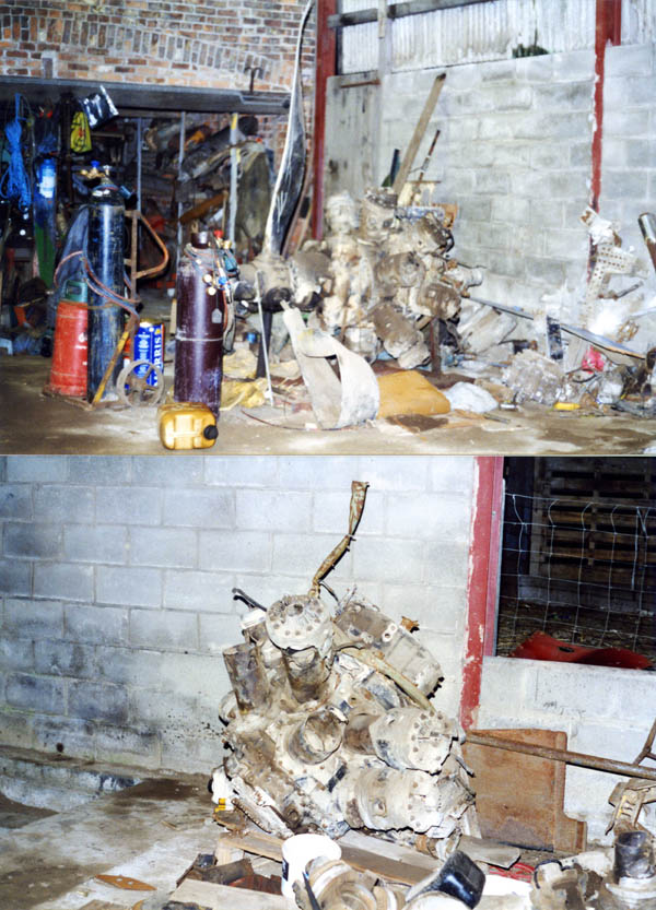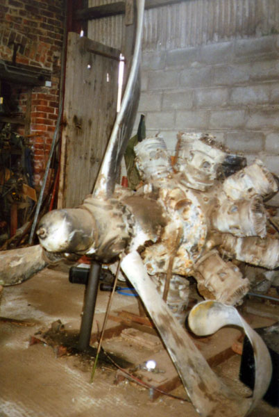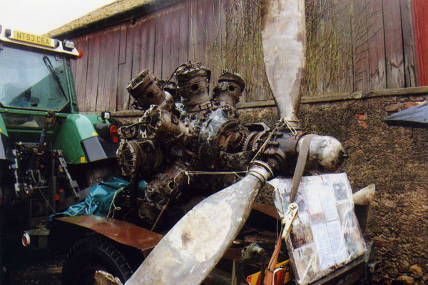 Various aviation archaeologists were asked to help with the licenced dig at the crash site in the early 2000s who carried out a magnetometer survey and helped with the recovery. The group an amount of wreckage including two engines which were subsequently retained by the landowner. The three photographs showing the engines in the farm were taken by Eric Barton when he visited the farm.