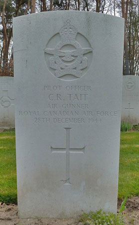 Cecil Tait was born on 27th April 1924 at Pembroke, Ontario, Canada and was the son of Thomas and Alice Malinda (nee Duke) Tait. After leaving school in 1940 he worked as a postmaetr's assistant for three years until being unemployed and returning home to assist his father scaling (fish?). He enlisted for RCAF service on 17th February 1943 at Ottawa and after training received his air gunner's flying badge on 12th November 1943.He arrived in the UK by the end of 1943 and would train at 82 OTU before posting to 1666 HCU on 22nd May 1944. He was posted to 419 Squadron on 31st August 1944. He and Norman Springstein may have met in Canada prior to arriving in the UK.