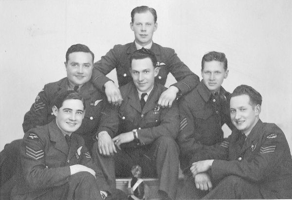 Back Row - Fred How. Middle Row - Cecil Hubley, Victor Zoratti and Cecil Tait. Front Row - Norman Springstein, Alfred MacGregor. This photograph was probably taken at OTU prior to joining with a flight engineer and was found on "www.veterans.gc.ca" but incorrectly names many of the crew. This crew's regular navigator when they arrived at 1666 H.C.U. on 22nd May 1944 was Victor Zoratti and was almost certainly flying in Halifax W1235 when it crashed at Wombleton a few days later on 3rd June 1944. F/O Zoratti was killed while flying as a second navigator with another crew on 11th July 1944 in the crash of Halifax HX147 near York. He appears to have been replaced by Russell Nickle.