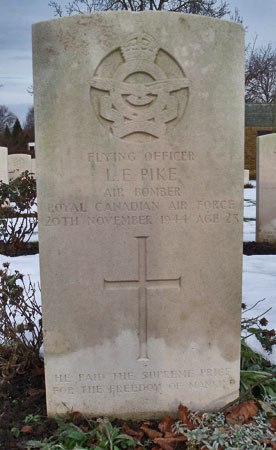 Bomb Aimer - F/O Lawrence Ellwin Pike RCAF (J/40651), aged 23, of Kerwood, Ontario, Canada. Buried Harrogate Stonefall Cemetery, Yorkshire (G/C/6).