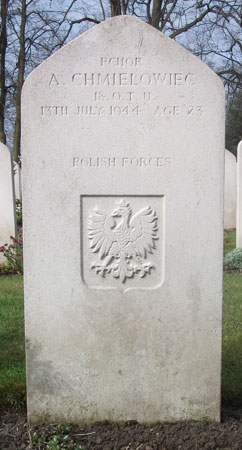 Navigator - Sgt Andrzej Chmielowiec PAF (P.704065), aged 23. Buried Newark Cemetery, Nottinghamshire.