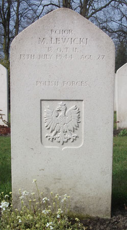 Air Gunner - Sgt Marian Lewicki PAF (P.706290), aged 27. Buried Newark Cemetery, Nottinghamshire.