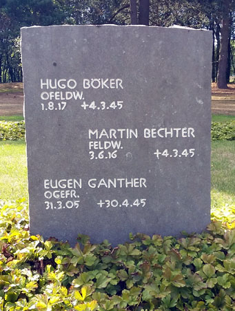 The gravestones baring the names of the four Luftwaffe airmen killed in this incident. Eugen Ganther was killed in a different incident but was interred with Boker and Bechter.