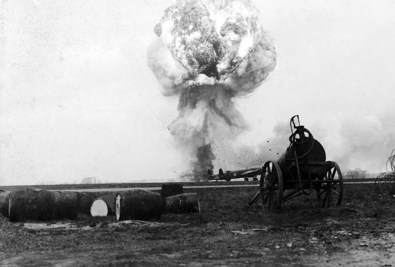 The Lancaster shown in the centre of the photograph must have received some damage but it's identity is not yet known. It may have been Lancaster KB811 but it would appear to be too far from the site of the explosion to receive damage that would write it off. This photograph is one that has been reproduced in many places. The Lancaster on the airfield must have sustained some damage with what appears to be at least one and possibly two large objects (possibly Merlin engines) flying through the air towards it but whether this is Lancaster KB811 I cannot be sure. I've seen another photograph in an e-book that shows the explosion site from much closer and another Lancaster is visible on it and sat on it's belly, I would suggest that being closer to the blast then this is probably Lancaster KB811. As I am unsure of any copyright issues I've not included it here. If that other aircraft was KB811 then the aircraft shown in the photograph above remains unidentified.