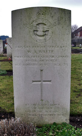Wireless Operator / Air Gunner - F/Sgt Wilfred Arthur Waite RAFVR (1415543), aged 23, of Chelsea, London. Buried Pocklington Cemetery, Yorkshire.