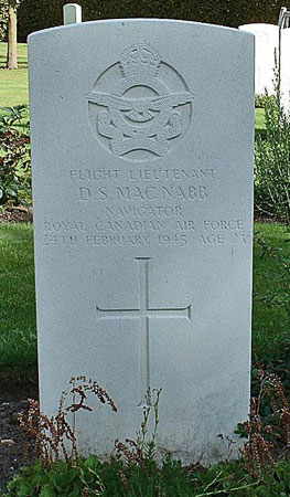 Donald MacNabb was born on 23rd August 1921 at Trafalgar Township, Ontario, Canada and was the son of Archibald Linford and Anna (nee Scott) MacNabb. He was working as a school teacher when he enlisted for RCAF service in September 1941 and after training in Canada was awarded his Air Observer's flying badge on 4th August 1942 and also a commission on the same date. During the latter months of 1942 he was serving at Seattle, USA but between late 1942 and 1944 there is a gap in his service history. He died of his injuries in the Friarage Hospital at Northallerton at around noon the following day.