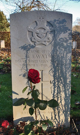 Pilot - F/O Dugald John Watson RAAF (417914), aged 21, of Prospect, South Australia. Buried Harrogate Stonefall Cemetery, Yorkshire (H.J.11).