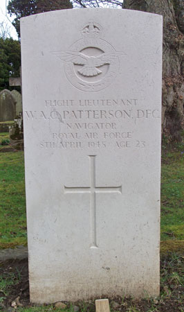 Navigator - F/Lt William Alan Clarke Patterson DFC RAFVR (129483), aged 23, of Hexham. Buried Hexham Cemetery, Northumberland.
