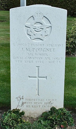 Bomb Aimer - F/Sgt James Maurice Pougnet RCAF (R/190262), aged 24, of Saint John, New Brunswick, Canada. Buried Harrogate Stonefall Cemetery, Yorkshire (G/J/6).