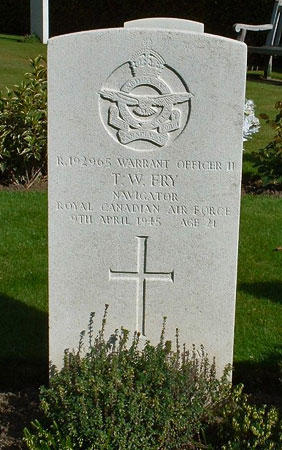 Navigator - WO2 Thomas William Fry RCAF (R/192965), aged 21, of Hollyburn, British Columbia, Canada. Buried Harrogate Stonefall Cemetery, Yorkshire (G/J/6).