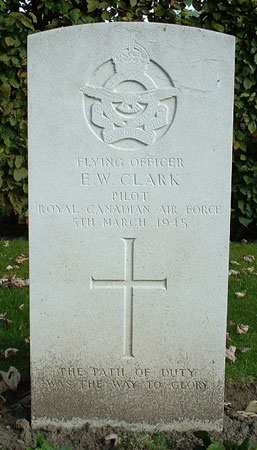 Pilot - F/O Earl William Clark RCAF (J/89818), aged 27, of Montreal, Quebec, Canada. Buried Harrogate Stonefall Cemetery, Yorkshire (H/P/19).