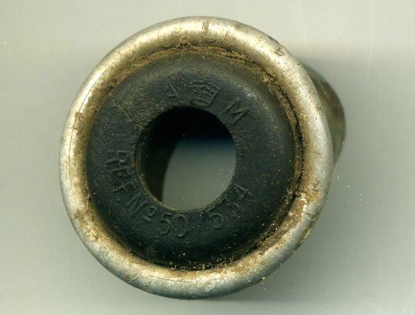 Air historians Albert Pritchard, Eric Barton and Ken Reast located small fragments on the surface at the crash site in February 1999 with permission from the landowner, confirming the crash location. The item shown above was picked up at the crash site and retained by Eric. While I have never agreed with pocketing bits found at crash sites, his son passed his small collection of items to me to find a new home for in 2022 which has allowed me to photograph the items and update some webpages with the more interesting items.