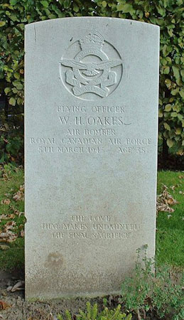 Bomb Aimer - F/O William Hugh Oakes RCAF (J/40103), aged 25, of Swan Lake, Manitoba, Canada. Buried Harrogate Stonefall Cemetery, Yorkshire (H/P/20).