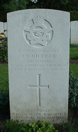 Air Gunner - F/Sgt John Edward Fielder RCAF (R/278513), aged 20, of Calgary, Alberta, Canada. Buried Harrogate Stonefall Cemetery, Yorkshire (H/G/14).