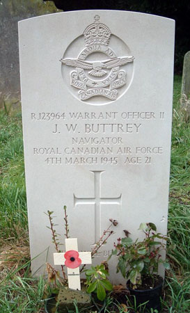 Navigator - WO2 John William Buttrey RCAF (R/123964), aged 21, of Medicine Hat, Alberta, Canada. Buried Pulverbatch Churchyard, Shropshire.