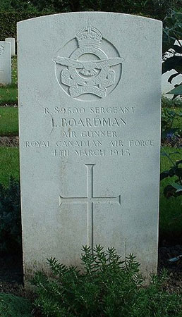 Air Gunner - Sgt Leonard Boardman RCAF (R/89500), aged 27, of St.Catharines, Ontario, Canada. Buried Harrogate Stonefall Cemetery, Yorkshire (H/G/9).
