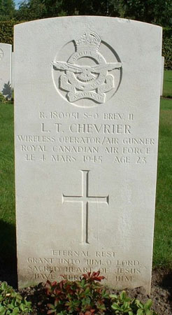 Wireless Operator / Air Gunner - WO2 Lawrence Theodore Chevrier RCAF (R/180951), aged 23, of Cornwall, Ontario, Canada. Buried Harrogate Stonefall Cemetery, Yorkshire (H/H/1).