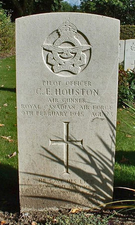 Air Gunner - P/O Clifford Elmer Houston RCAF (J/94145), aged 23, of Fort Garry, Manitoba, Canada. Buried Harrogate Stonefall Cemetery, Yorkshire (H/F/16).