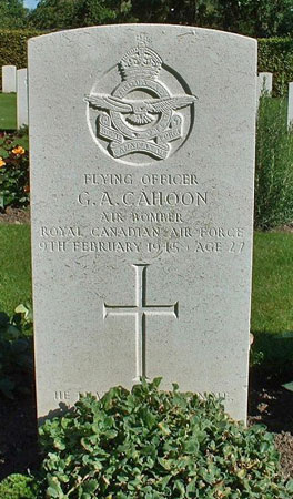 Bomb Aimer - F/O Grant Albert Cahoon RCAF (J/38389), aged 27, of Leavitt, Alberta, Canada. Buried Harrogate Stonefall Cemetery, Yorkshire (H/G/2).