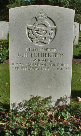 Navigator - P/O George Howard Fetherston RCAF (J/94144), aged 22, of Sault Ste Marie, Ontario, Canada. Buried Harrogate Stonefall Cemetery, Yorkshire (H/F/15).