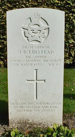 Air Gunner - P/O John Blair Linstead RCAF (J/94527), aged 19, of High River, Alberta, Canada. Buried Harrogate Stonefall Cemetery, Yorkshire (H/P/9).
