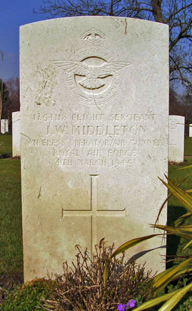 Wireless Operator / Air Gunner - F/Sgt John Wilfred Middleton RAFVR (1254118), aged 22. Buried Harrogate Stonefall Cemetery, Yorkshire (H/H/2).