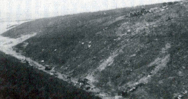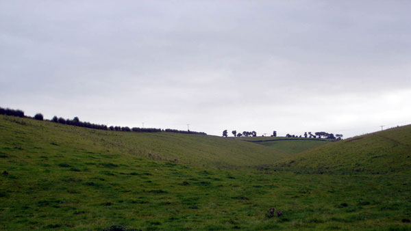 A photograph of the general area of the crash, as seen from the minor road just to the east of the site looking west. Air historians Eric Barton, Albert Pritchard and Ken Reast located small fragments on the surface ar the site with permission from the land owner in April 2006 to confirm the location.