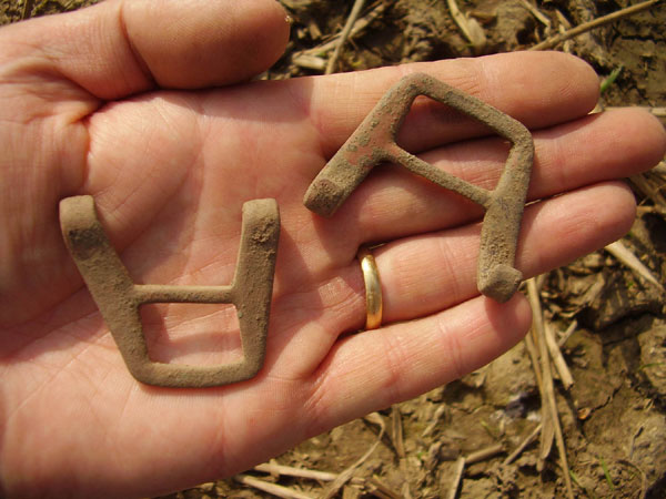 A couple of parachute strap buckles found at the crash site in 2008.