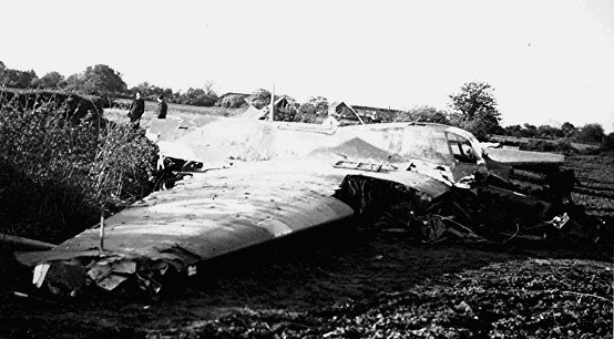 In the early hours of 20th May 1950 this 23 Squadron aircraft was flown on a night training exercise that saw thew crew undertake practice night interceptions, which would have seen them vectored onto target aircraft by either a ground controller or by the equipment carried in the aircraft. At around 03.00hrs and after two hours of flying the crew were returning to Church Fenton airfield in low cloud and had joined the landing circuit. While flying to the south of the airfield while in the landing circuit the pilot made a turn and descended to break cloud but the aircraft appears to have been flying at the wrong height and it flew into the ground. It struck the ground with the undercarriage lowered roughly half a mile due south of Little Fenton and largely stayed intact but both airmen were injured. The photograph shown above is said to be of RL257 after this incident.