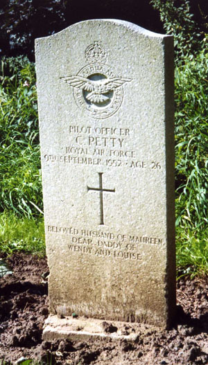 Colin Petty was born in Hull on 12th January 1926 and attended Hull Grammar School as a boy, he was known as "Jerry". He joined the RAF at the age of sixteen to serve in the ground trades and had initially served as a fitter. He later volunteered to switch to become a pilot. Many months after his death the London Gazette stated that he had been appointed to a permanent commission in the RAF to the rank of P/O on 22nd February 1954 but with his period of service to count from 15th September 1950 and this may be the date he gained his Pilot's Wings. He married Maureen Milsom in Withernsea in 1948, he also left a young daughter and his wife was pregnant with a second daughter. His wife appears to have re-married in the late 1950s in the Withernsea area.