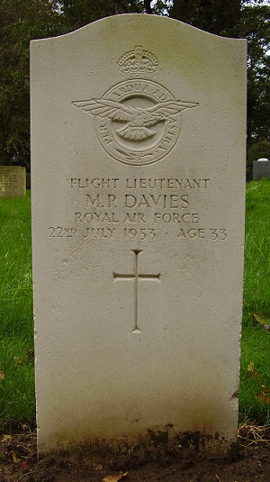 Instructor Pilot - F/Lt Maurice Peter Davies RAF (119872), aged 33. Buried Kirkby Wharfe Cemetery, Yorkshire.
