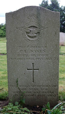 Pilot - P/O Peter Edward Jones RAF (2557800), aged 23. Buried Finningley Churchyard, Yorkshire.