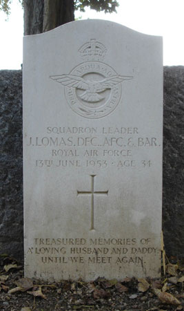 Pilot - S/Ldr James Lomas DFC, AFC and Bar RAF (47118), aged 34. Buried Thornaby Cemetery, Yorkshire (H/I/1).