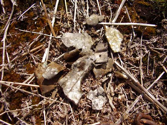 I visited the crash site in July 2006 locating a number of small fragments of the Meteor at the site. The general area of the crash is frequently used by young arsonists to practice their skills and was left bare of all vegetation in 2006. I returned a year later (when the photograph shown above was taken) and again in 2017.
