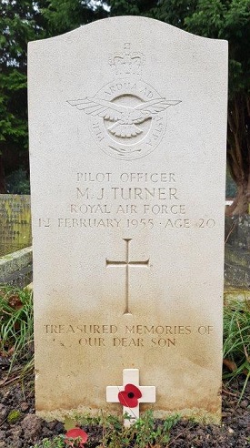 Pilot - P/O Michael John Turner RAF (2567127), aged 20. Buried Darlington West Cemetery, Durham.