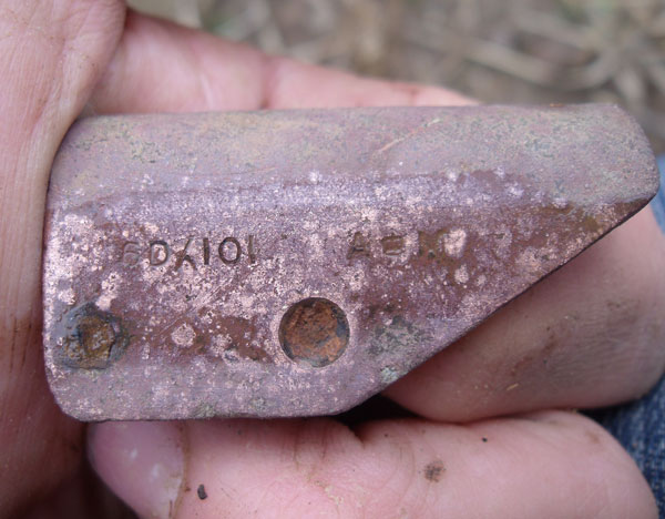 searched and some larger pieces of the aircraft were found in the grass but had clearly been there for many years. Amongst these finds was a large lead balance weight and pieces of the aircraft's skinning along with smaller finds of piping, bakerlite and cast alluminium. We found no parts that contained stamped part numbers but with this being the only serious Dakota accident in Yorkshire none us have any experience of Dakota part number sequences or how Douglas marked their aircraft parts. One small piece was found with a pencilled number on it and another part found when cleaned was traced as that of an aircrew oxygen pipe bayonet connector fitting.