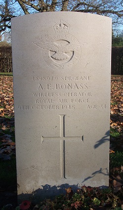 Wireless Operator - W/O Albert Edward Bonass RAFVR (1898979), aged 34. Buried Harrogate Stonefall Cemetery, Yorkshire (G.K.11).