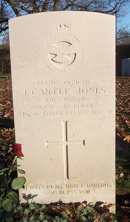 Air Gunner - F/O John Cantle-Jones RAFVR (184301), aged 31. Buried Harrogate Stonefall Cemetery, Yorkshire (G.K.10).