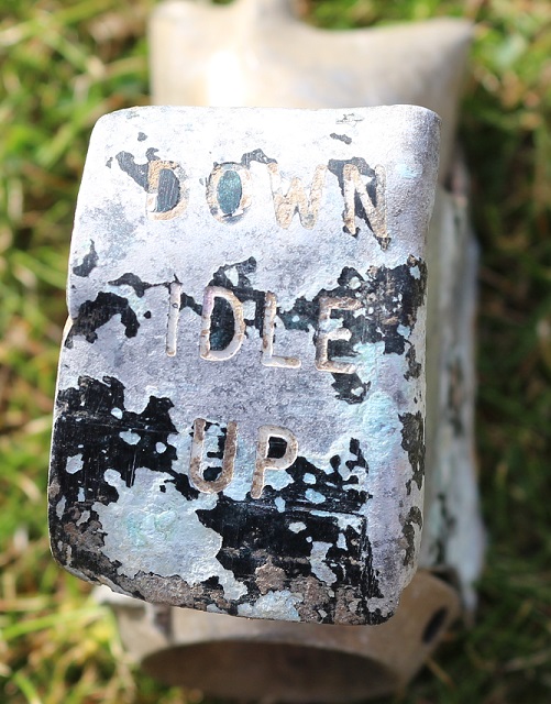 The item shown here is from the cockpit and is the positive indicator window plate from the chassis (undercarriage) selector control quadrant.