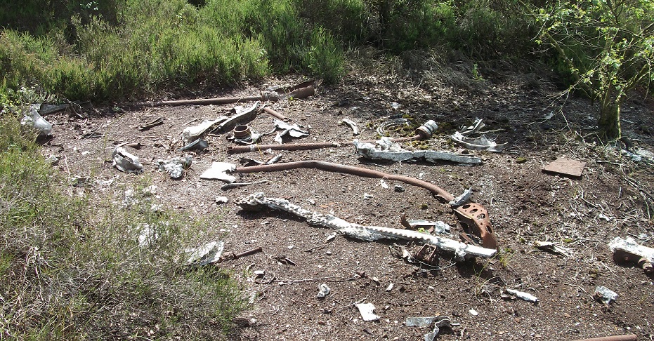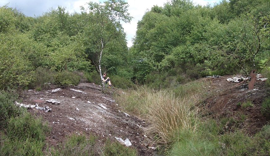 General overviews of the crash site showing the ditch that caused the aircraft issues and where it then caught fire. These photographs were taken in June 2014 when some very nasty flying hornet-like creatures were guarding the site and bite through clothing. A warning to anyone potentially visiting; stay away when it is hot.
