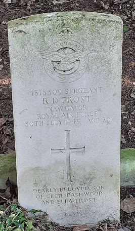 Navigator - Sgt Robert Dashwood Frost RAFVR (1818309), aged 20. Buried Swithland Churchyard, Leicestershire.