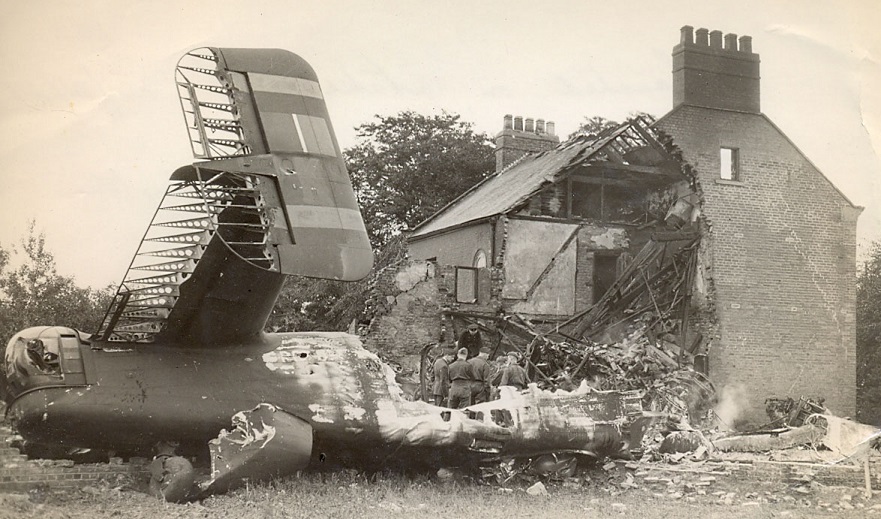 During the afternoon of 30th July 1945 this 102 Squadron aircraft was flown on a basic circuits and landings training exercise at Pocklington airfield. During one of the take off runs the starboard outer engine as it set off down the runway. Having much more power on one side of the aircraft than the other caused the aircraft to swing off the runway. Instead of attempting to reduce power and slow the aircraft the pilot attempted to get airborne. It managed to get to 150 feet off the ground and clear the airfield boundary but as the flaps were raised instead of the undercarriage this affected the lift so it lost height and crashed into Park House, just off the airfield boundary at 15.35hrs. Four aircrew in the aircraft were found to have died in the crash. The town N.F.S. and airfield fire tenders managed to rescue the rear gunner but he died of his injuries soon after. The householder of Red House was slightly injured and her father narrowly missed being injured. The adjoining house a nine feet high wall was demolished and other aspects of the garden damaged but the house appears to have been undamaged (this was probably Sherbutt House). Many of this crew had been posted in to 102 Squadron after V.E.Day including the pilot, who had over 1000 flying hours to his name but very few flying a Halifax. The undercarriage and flap levers in the Halifax cockpit were very close together and many Halifax mishap resulted when someone used the wrong lever. It was the second time Red House was struck by an aeroplane. On 10th August 1943 Halifax JB794 hit it while making an approach to land and then crashed into a field soon after.